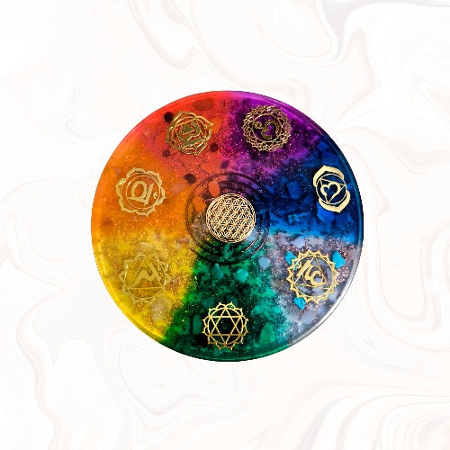 - Meditation: Die Chakra-Platte kann während der Meditation verwendet werden, um die Chakren zu aktivieren und die energetische Balance zu fördern. Sie kann auf den Körper gelegt oder einfach im Raum platziert werden, um eine harmonische Atmosphäre zu schaffen.